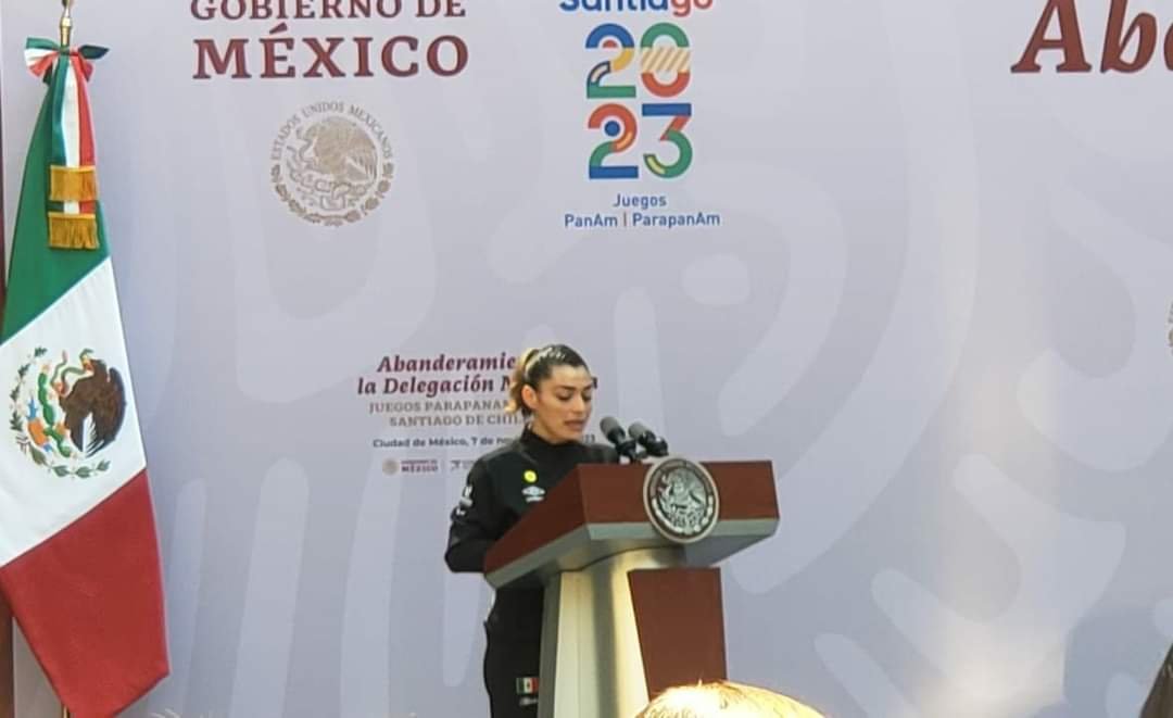 CDMX.- 7 NOVIEMBRE 2023.- La yucateca Jessica García Quijano, tuvo a su cargo el discurso, en representación de los para atletas, en la ceremonia de