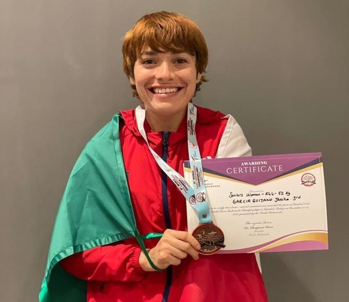 Mérida, Yuc. 12 Dic. 2021.- La taekwondoín yucateca y seleccionada nacional, Jessica García Quijano logró el bronce en la categoría K44, menos de 52 kilos,