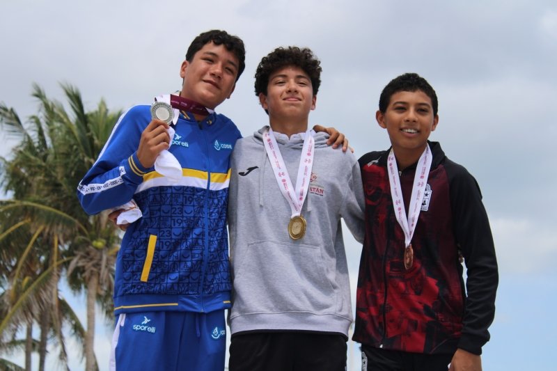 OLIMPIADA NACIONAL 2025 PROGRESO, YUC. JUNIO 2025.- Jesús Tenorio Murillo se agenció la medalla de oro en la prueba de acuatlón para 12-13 años en