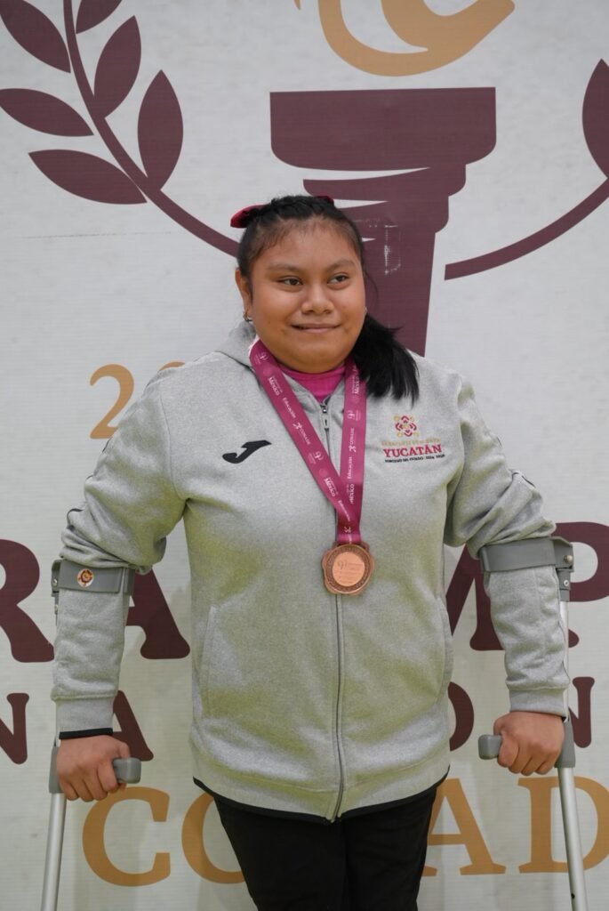 Asimismo, Karol Puc Canche en impulso de bala F33 juvenil mayor logró la medalla de plata con marca de 3.85 metros, antes también se llevó la presea de tercer lugar en la prueba de lanzamiento de jabalina con 5.55 metros lanzados.- Fuente: IDEY