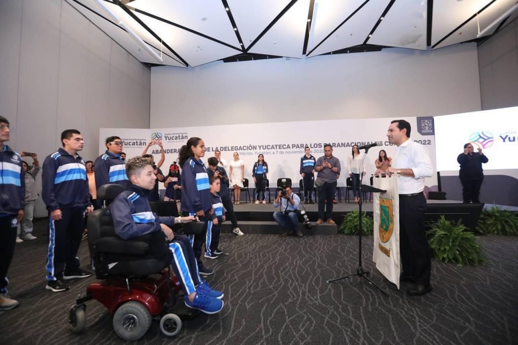 El grupo de paratletas fue abanderado en el Centro de Convenciones y Exposiciones “Siglo XXI”, por el gobernador Mauricio Vila Dosal, quien les reiteró su compromiso e invitó a dar su máximo esfuerzo en la justa. Igualmente, reconoció el esfuerzo, la dedicación y sus ganas de superarse.- Con información del Gobierno del Estado