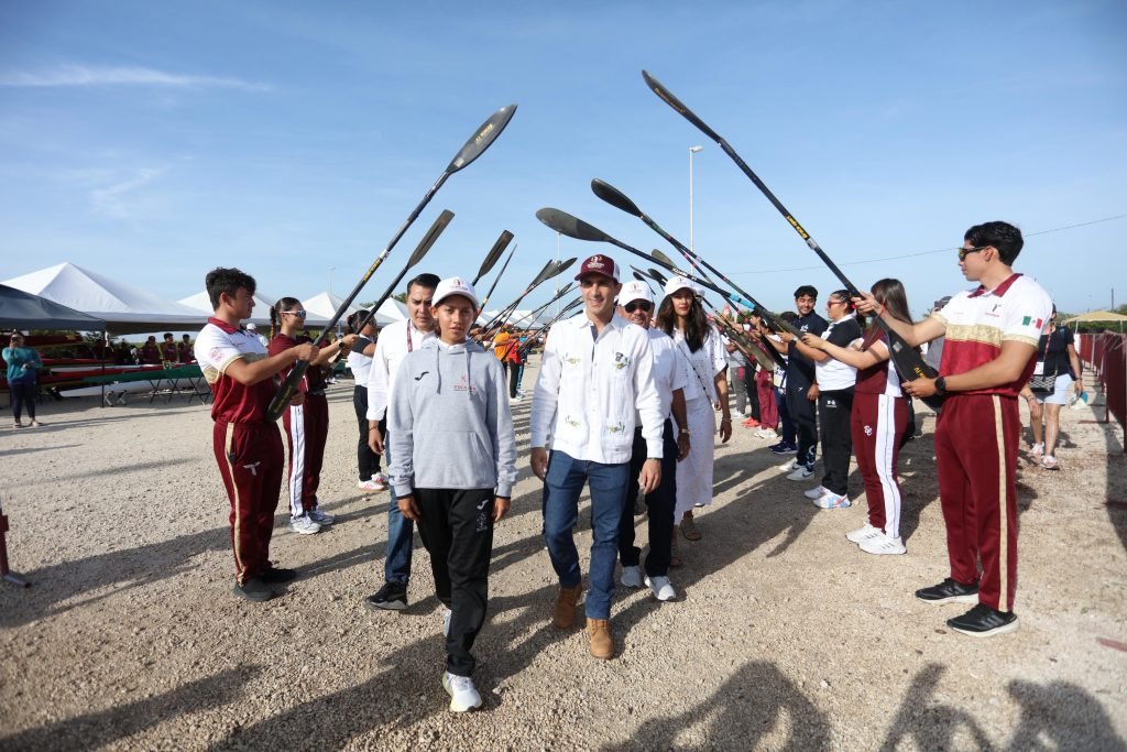 Progreso, Yuc. 9 Julio 2025.- En el marco del inicio de las competencias de canotaje de la Olimpiada Nacional en Yucatán, el director general de la CONADE, Rommel Pacheco, entregó embarcaciones profesionales a la selección yucateca de Remo para continuar con su preparación rumbo a sus próximas competencias y selectivos.