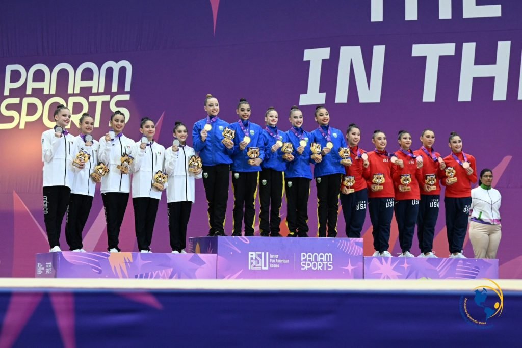 Posteriormente, las gimnastas mexicanas se colgaron la medalla de plata en la final de 5 aros con 23.750 unidades, solo por debajo de las brasileñas, quienes obtuvieron 24.550, mientras que Estados Unidos se hizo del bronce con 23.250.