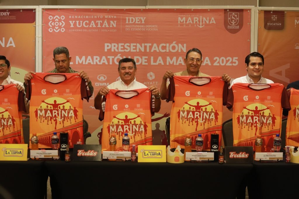 MÉRIDA, YUC. 16 MAYO 2025.- El Comité Organizador del Maratón de la Marina dio a conocer detalles del evento que se realizará este domingo 8 de junio en una justa deportiva tradicional que cumple 36 años, que promueve el Gobierno del Estado a través del Instituto del Deporte, y que se realizará este año en su original ruta de Mérida a Progreso, saliendo desde el Monumento a la Patria para terminar en el Malecón de Progreso a un lado del Museo del Meteorito y esperando una inscripción de 3 mil corredores en sus modalidades de 42 y 21 kilómetros, además del maratón por relevos.