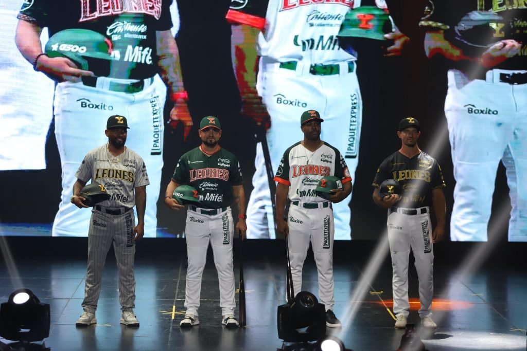 MÉRIDA, YUC. 8 ABRIL 2025.- Los Leones de Yucatán presentaron de forma oficial los uniformes que usarán para la temporada 2025, el nuevo logo del club, siendo éste el cuarto en la historia, así como a los jugadores que integran el roster de pretemporada.