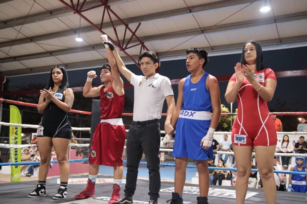 Evelin Pech, del gimnasio Mantequilla ganó por RSC en la segunda campanada en hasta 42 kilos ganándole a Mayte Dzul, del gimnasio Rosarito Juan Pablo II.