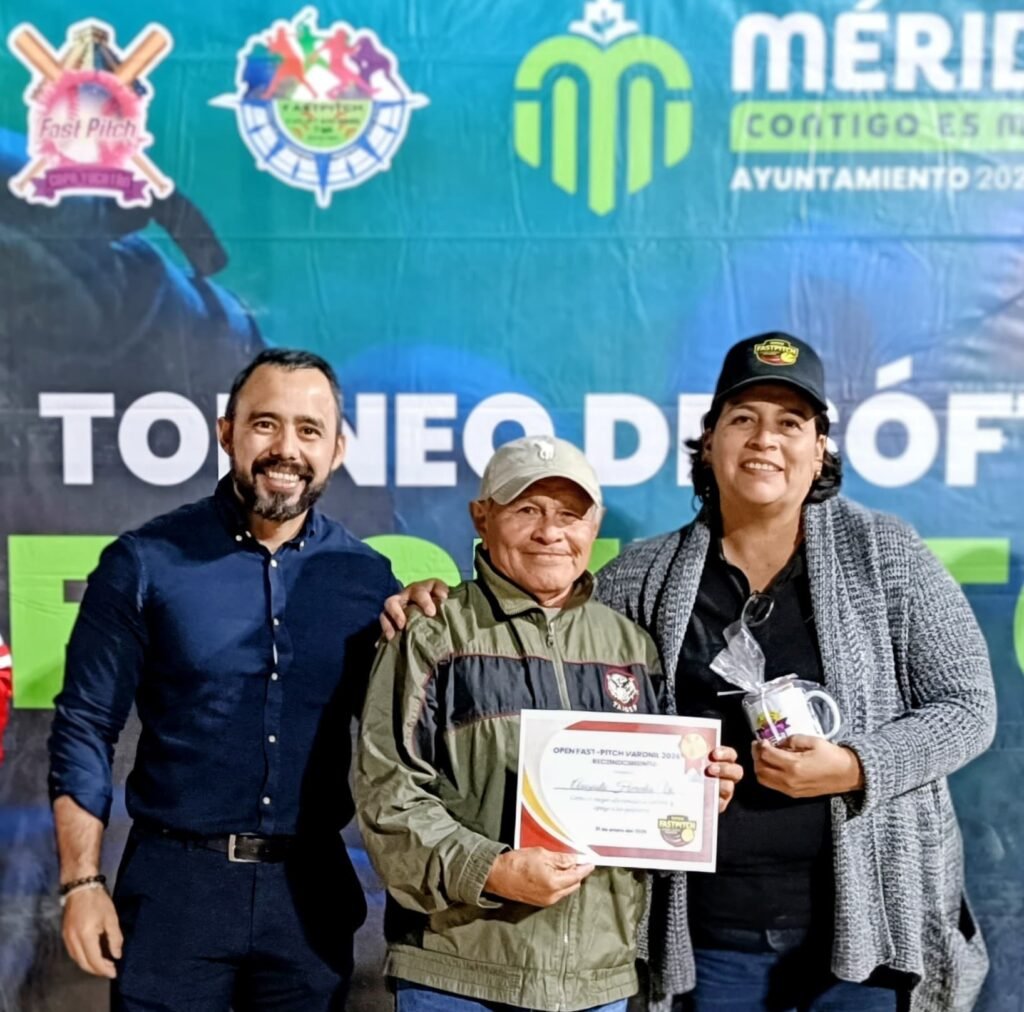 En la inauguración se hizo entrega de un reconocimiento especial a don Augusto Heredia Uc, mejor conocido como ‘El Cuba’, quien es un aficionado que apoya incondicionalmente el softbol.