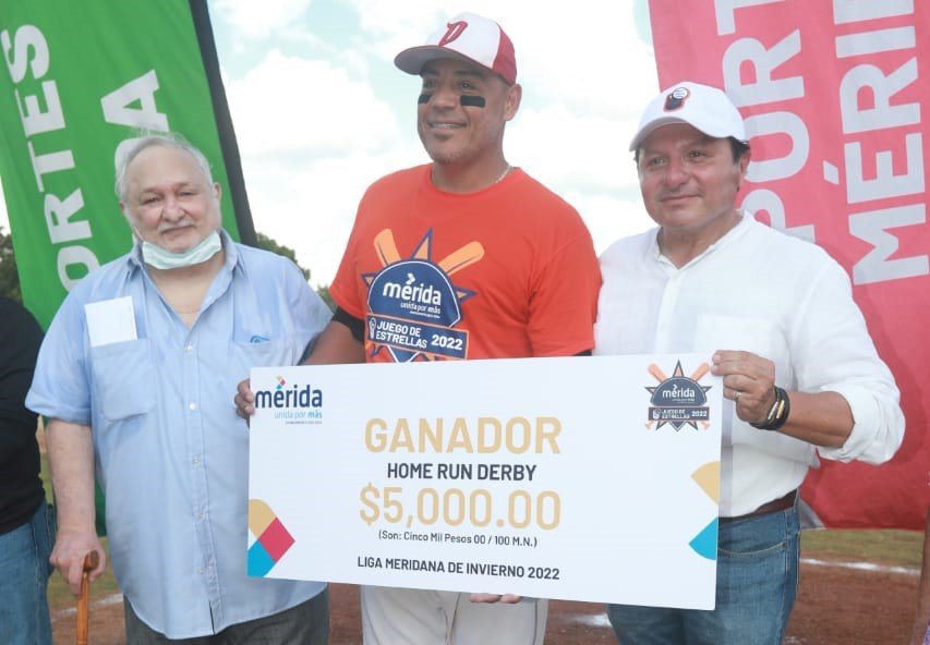 El receptor de los pingos recibió el premio económico de manos de Jesús Aguilar y Aguilar, secretario técnico del Ayuntamiento de Mérida, quien estuvo acompañado por los familiares de Russell Gutiérrez Canto y Herbert Martínez Fuente, los periodistas fallecidos que fueron homenajeados en el Juego de Estrellas.