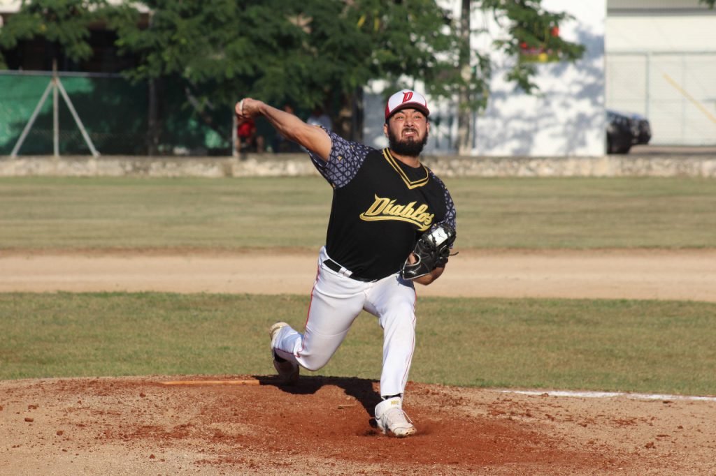 MÉRIDA, YUC. 12 NOV. 2022.- Una sólida labor del abridor y triunfador pingo Juan Salvador Delgadillo, condujo a los Diablos de la Bojórquez a vencer 9×1 a los Bravos de Chicxulub Pueblo.