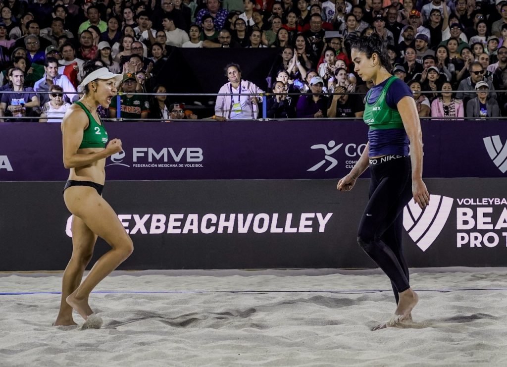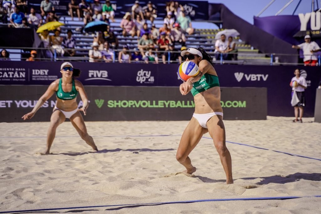PROGRESO, YUC. 22 MARZO, 2025.- Las españolas Daniela Álvarez y Tania Moreno fueron una de las parejas que avanzaron a los cuartos de final del Yucatán Challenge del Volleyball World Beach Pro Tour el sábado. En un duelo directo de octavos de final entre las dos primeras cabezas de serie del cuadro principal, eliminaron a las líderes del cuadro, Carol Solberg y Rebecca Cavalcanti, en Puerto Progreso.