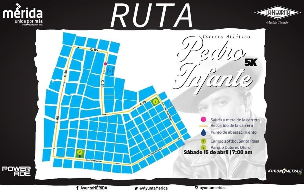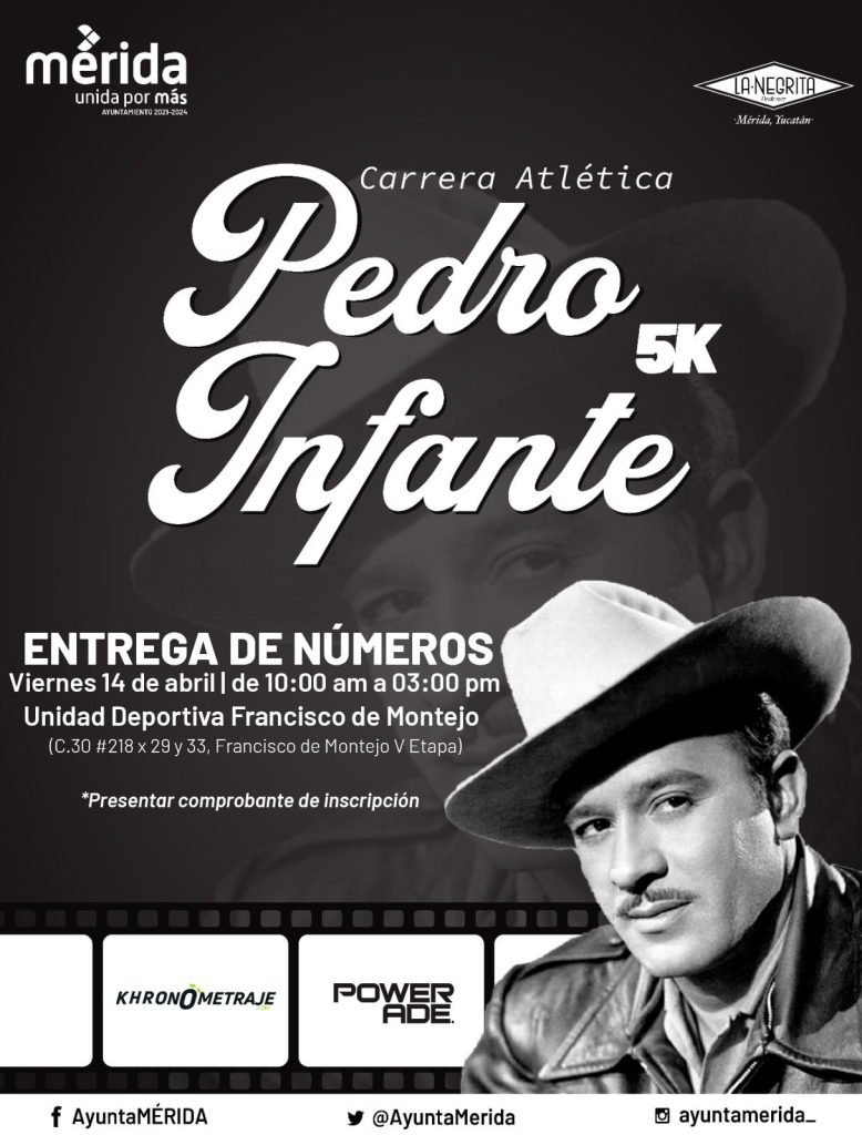 MÉRIDA, YUC. 12 ABRIL 2023.- La Mérida deportiva le rinde tributo una vez más a la memoria del “Ídolo de México», Pedro Infante Cruz, con la celebración de la tradicional Carrera Atlética de 5 kilómetros, que se llevará a cabo este sábado 15 de abril, con disparo de salida a las siete de la mañana.