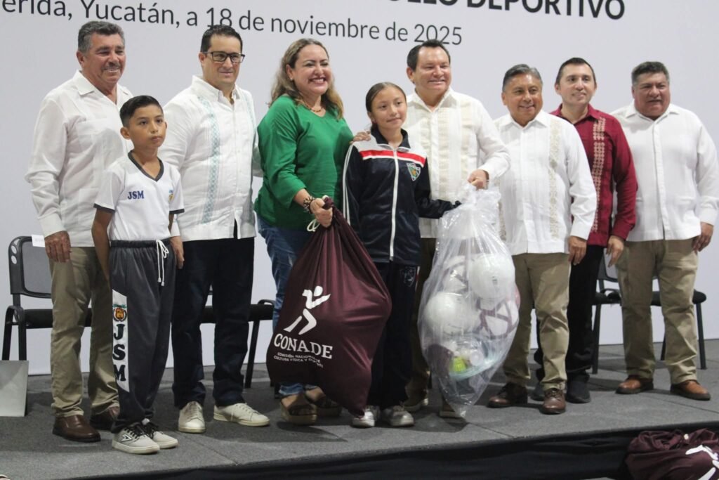 Mérida, Yuc. 18 Noviembre 2025.- El Gobernador Joaquín Díaz Mena encabezó la entrega de material deportivo a 106 escuelas de municipios yucatecos, así como a Centros de Desarrollo Deportivo, para que niñas, niños y jóvenes practiquen deporte con herramientas dignas, seguras y de calidad.