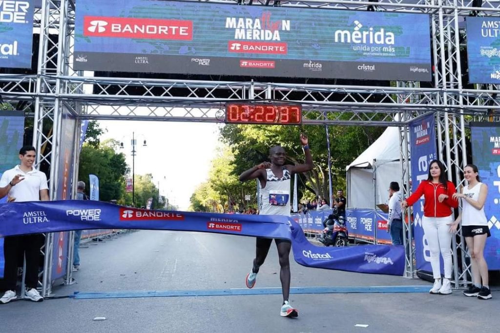 MÉRIDA, YUC. 8 ENE. 2023-. Las panteras keninas alargaron su reinado en la versión 2023 del Marathón de Mérida, ya que Erick Monyenye Mose se proclamó bicampeón, sumando un logro más a su brillante carrera en México, en donde ha conquistado en cuatro ocasiones el Maratón de Ciudad Juárez y tres veces el de Torreón.