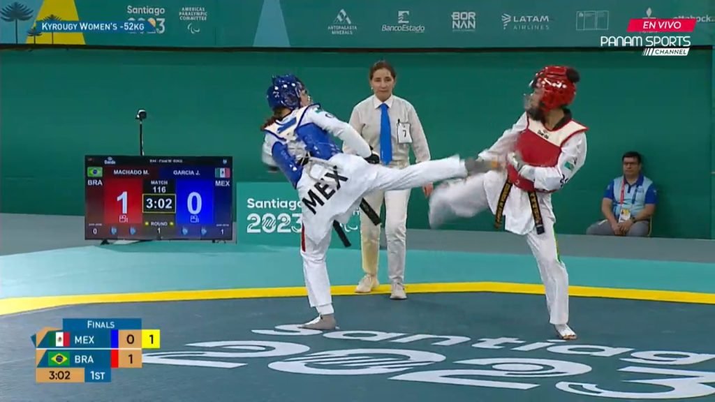 MÉRIDA, YUC. 23 NOVIEMBRE 2023.- La seleccionada nacional de para taekwondo, la yucateca Jessica García Quijano, se colgó la insignia plateada en la categoría de -52 kg, en los VII Juegos Parapanamericanos en Santiago de Chile 2023