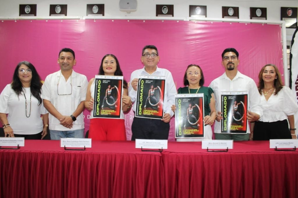 En la presentación llevada a cabo en la sala de juntas del IDEY, estuvieron presentes acompañando a Pech Pacheco; Jorge Humberto Bobadilla Ceballos; delegado estatal de Sinergía, Luis Galeana Muñoz, docente del diplomado, Lucia Cruz Bastarrachea; coordinadora administrativa del diplomado, Heydi Patricia Quintal Fitzmaurice, Sinergia Media y Comunicación social y Brenda Gil Montiel, directora de arte y cultura de Sinergia.- FUENTE: IDEY