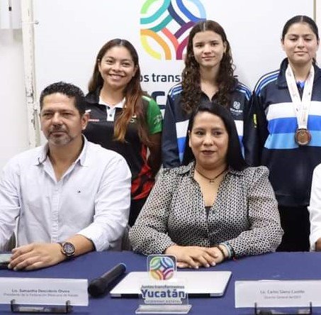 Paulina Medina Ramírez, directora de Mercado Asociativo y Corporativo de SEFOTUR estuvo presente en la rueda de prensa junto con Guadalupe Quintal Catzín, coordinadora de Alto Rendimiento del Instituto del Deporte de Yucatán, junto con Gustavo Cuevas Rocer, vicepresidente de la Agrupación de Karate para el Impulso y Desarrollo del Alto Rendimiento en el estado.