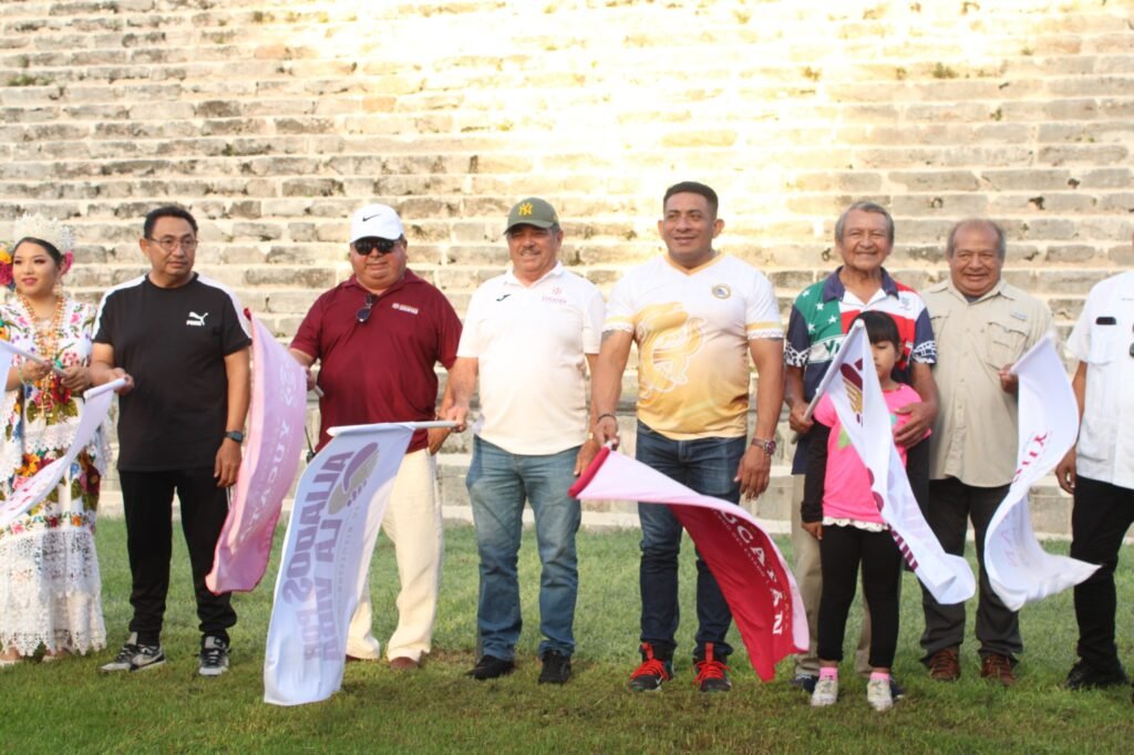 Víctor Maravé Canché, presidente del comité organizador de la Carrera Atlética del Mayab estuvo acompañado por Armin Lizama Córdova, director del Instituto del Deporte y Carlos Baltasar Ayuso Vera, presidente municipal de Muna, además de los representantes del INAH y Cultur, así como las reinas de belleza Ana Gómez Pantoja de la Carrera Uxmal a Muna y Lía Martín Interián de los festejos de Aniversario del lugar.