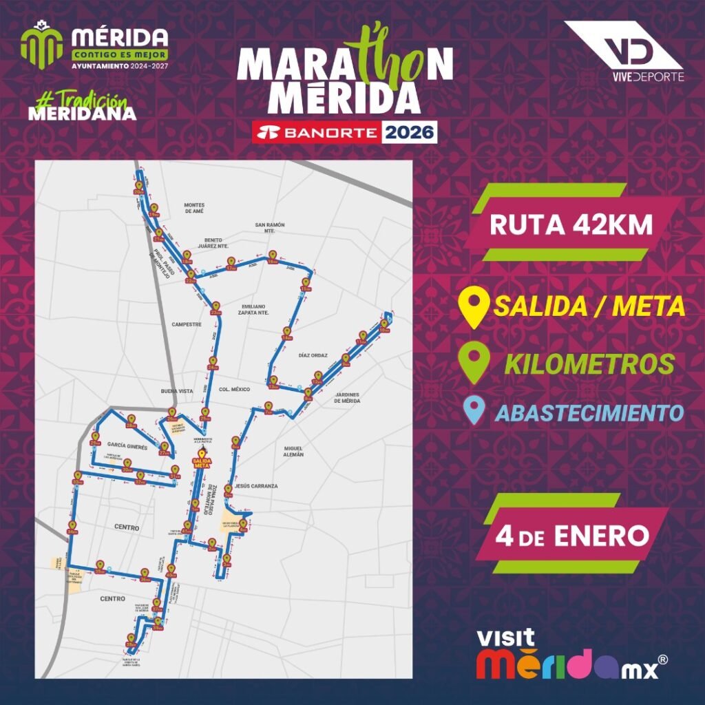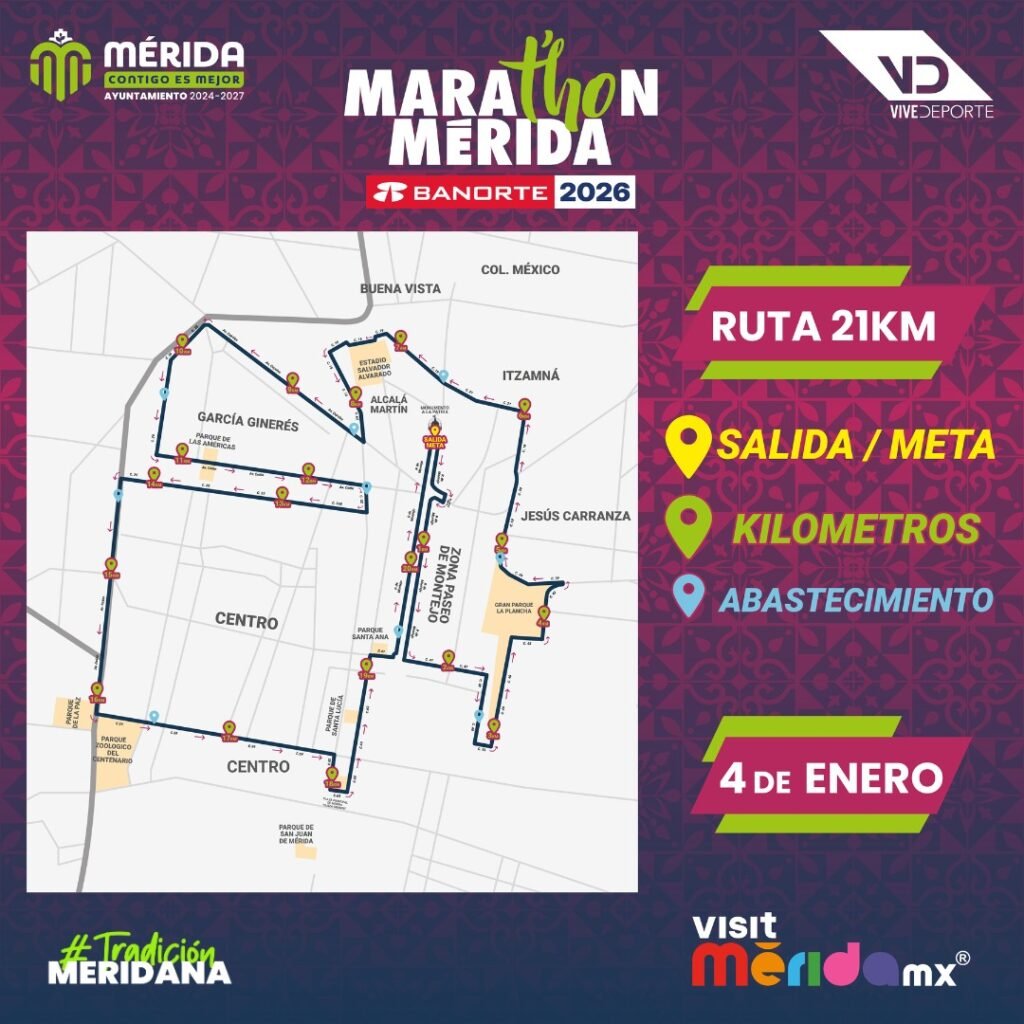 Para más información sobre el Marat’hon Mérida Banorte 2026, las y los interesados pueden ingresar al sitio web: https://marathonmerida.dashport.run/ .- Fuente: Ayuntamiento de Mérida