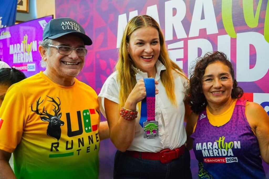 • La alcaldesa Cecilia Patrón presenta la playera, medalla y ruta del Marat’hon Mérida-Banorte 2026.