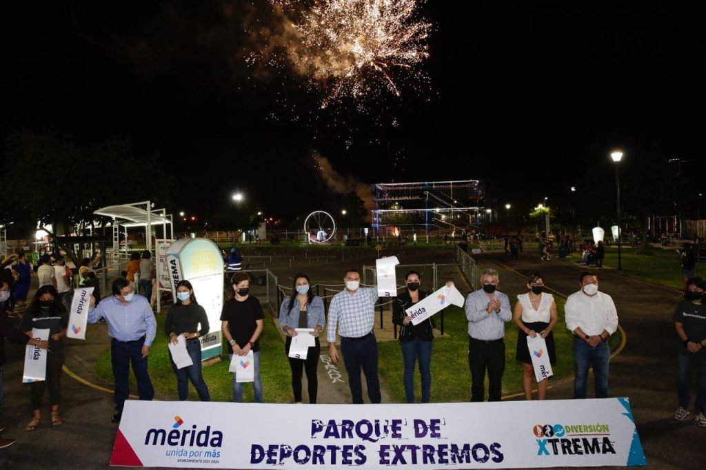 Mérida, Yuc. 15-Dic-2021.- Con gran beneplácito por parte de la comunidad deportista y el público en general, se inauguró la tercera y última etapa del Parque de Deportes Extremos, ubicado en la calle 132, en Bosques del Poniente.