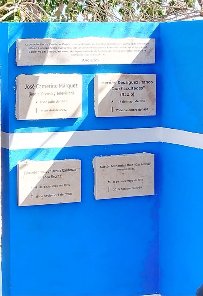 Dichas placas se encuentran en la Avenida del Cronista Deportivo, del fraccionamiento Ciudad Caucel de esta capital. En este evento estuvieron presentes integrantes de la Asociación de Cronistas Deportivos de Yucatán (Acrodey), así como representantes del Gobierno estatal y municipal.